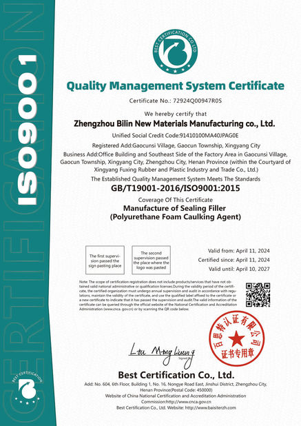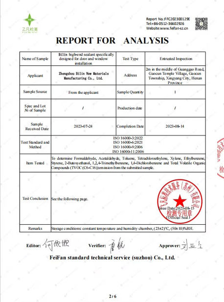 Produk Bilin memenuhi standar seperti ASTM C920 AS, CE Eropa, DIN 4102 Jerman dan A+ Prancis, dan memenuhi persyaratan ketat pasar global dalam hal kinerja, keamanan,dan perlindungan lingkungan.